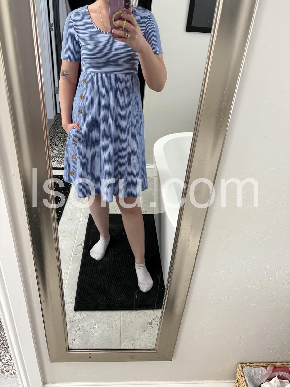 I absolutely love this dress! The pockets are a huge plus for me. The blue and white stripes are so classic for summer, and the material is really lightweight and breathable. Highly recommend!