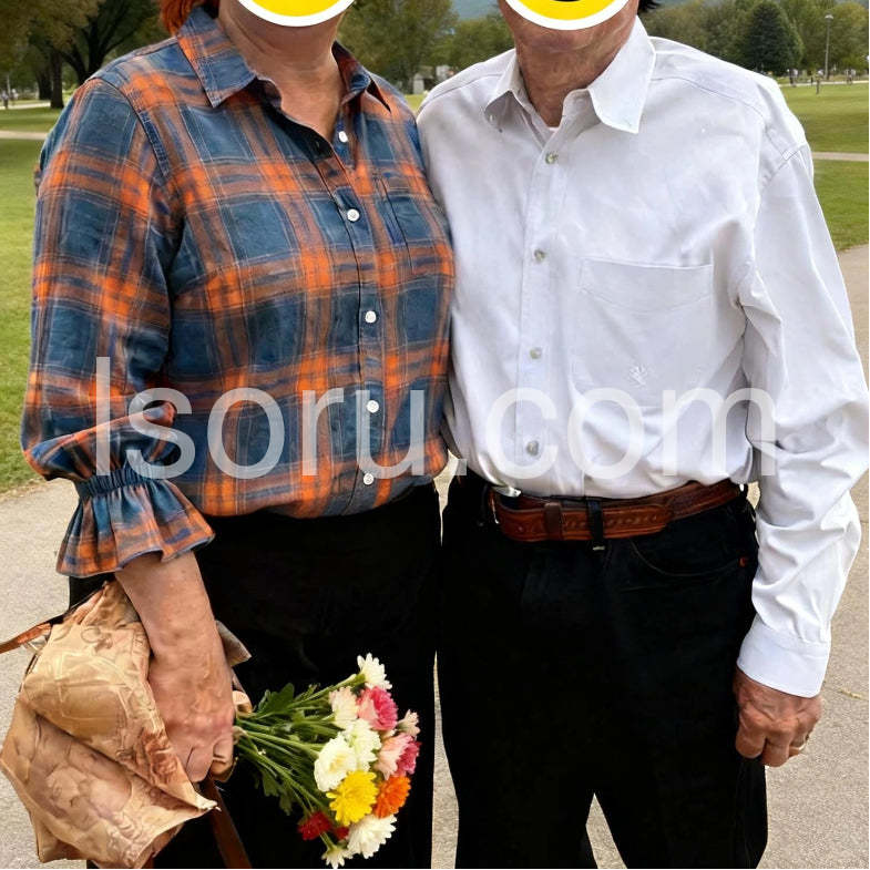 Blue Check Button Down Shirt with Ruffle Cuff Sleeves