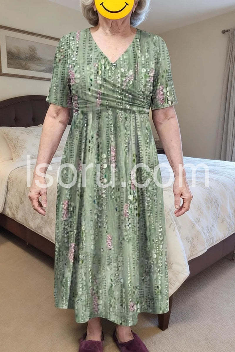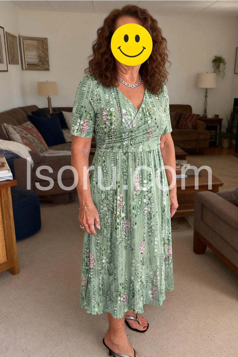 This dress is beautifully made and incredibly forgiving. The wrap waist style with the gathering is great if you want something non-constricting. It flows beautifully when you walk. Oh, and did I mention the pockets? Love it!