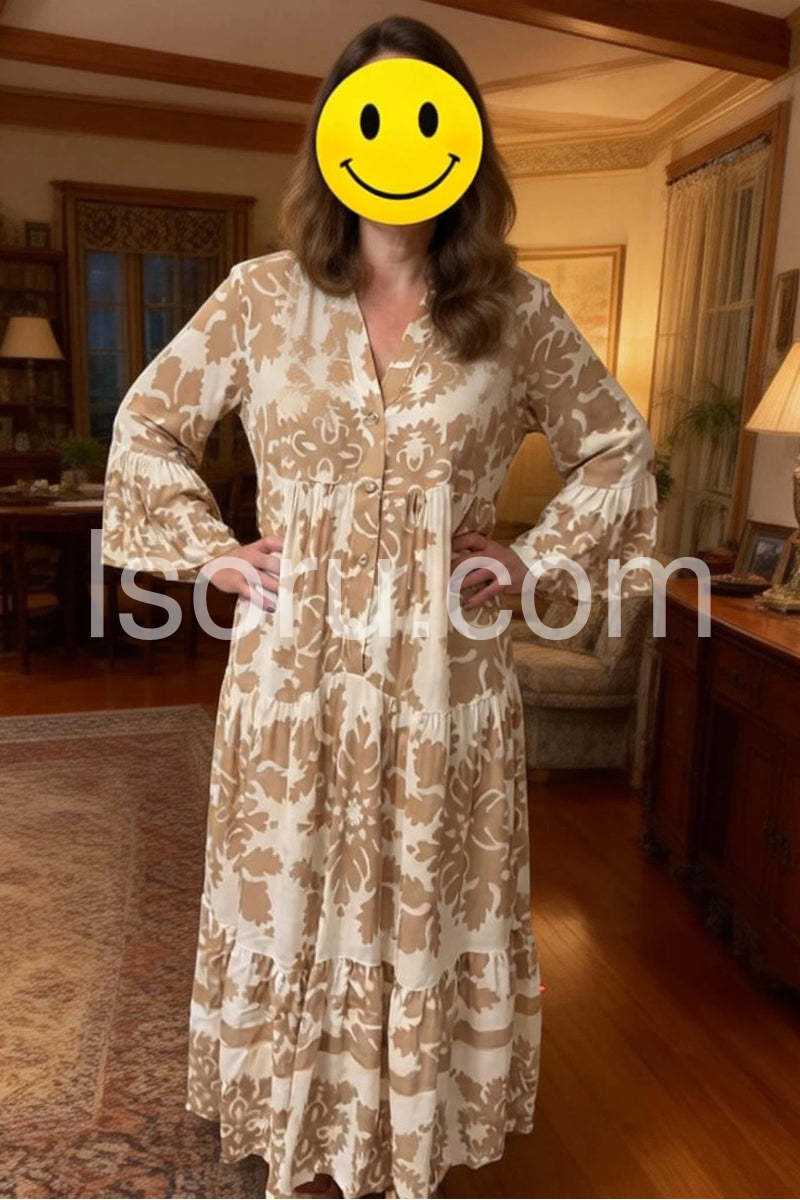 So stunning and elegant yet comfortable enough to wear all day. The neutral beige floral print is really pretty in person. Great quality for the price.