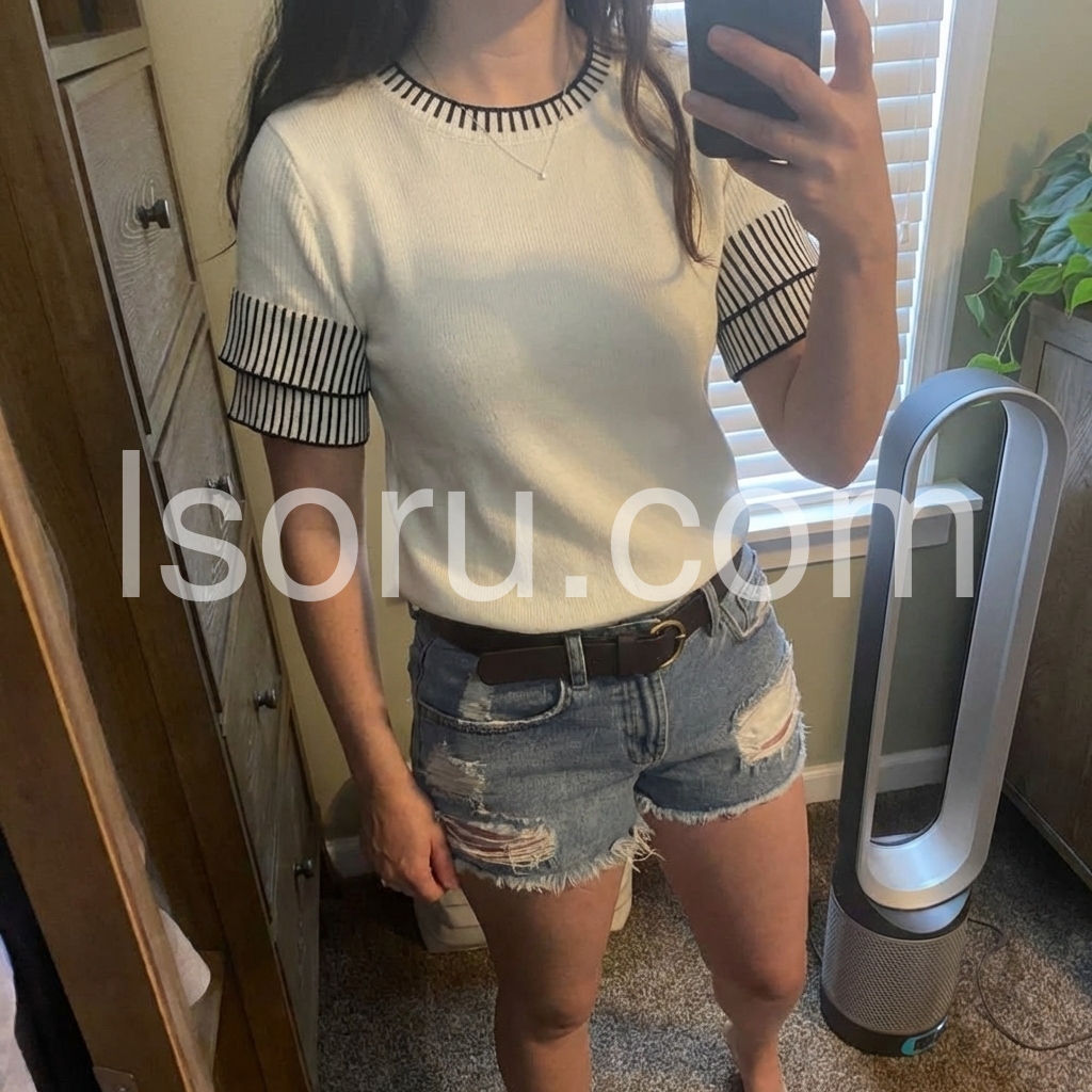 Super cute top. I think it looks best tucked in. I wear a small and the small fit great. This isn’t a tight fitting shirt which I prefer. I don’t like tight things. Recommend it!